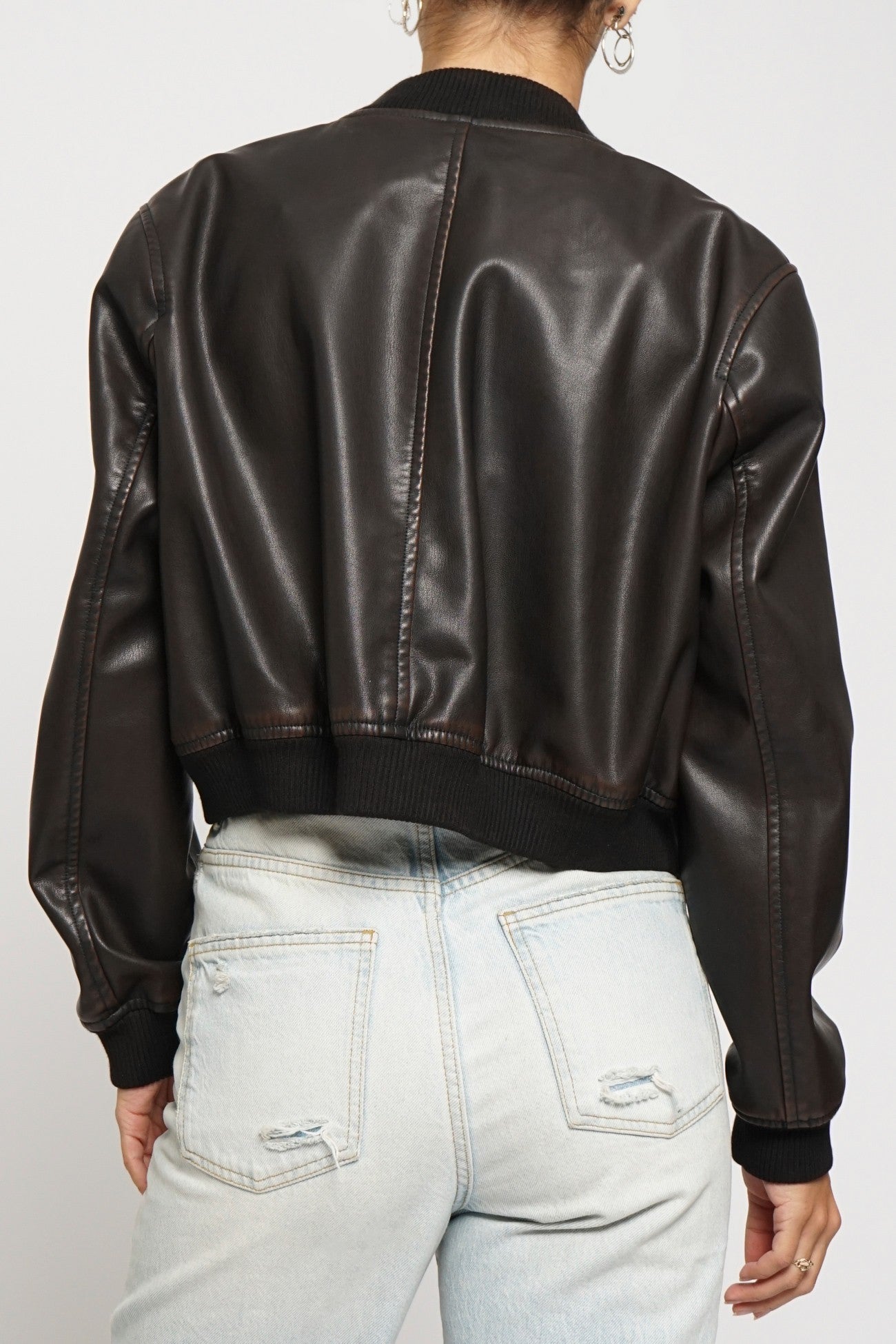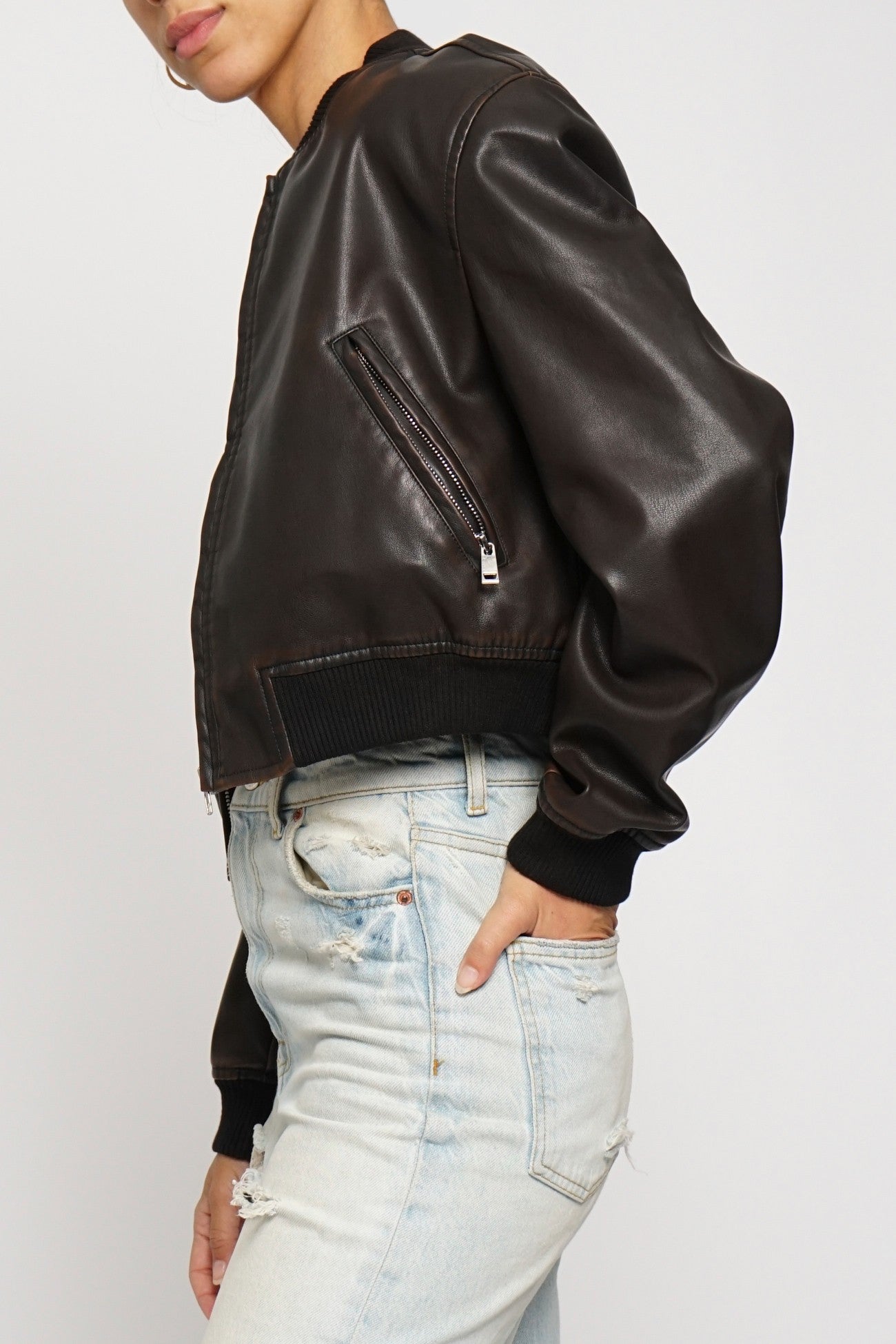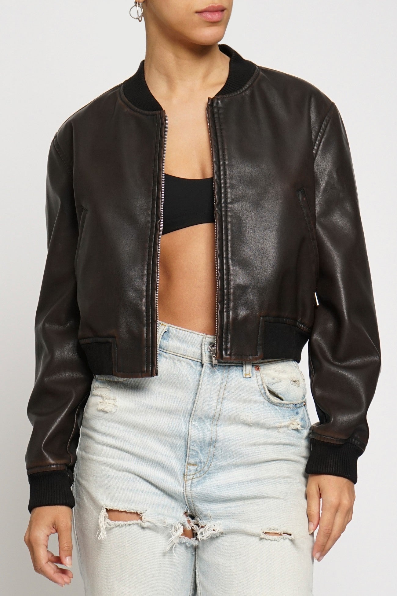 - 55% Polyurethane, 45% Polyester, Lining 100% Polyester - Woven faux leather - Washed effect - Bomber style - Long sleeves - Pockets