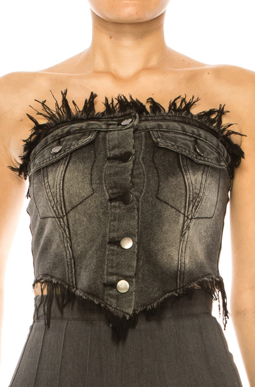 Denim Acid Washed Button Up Top