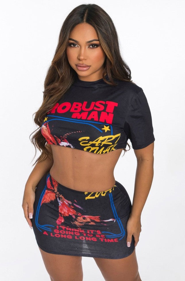 Graphic Tee + Mini Skirt Set Red