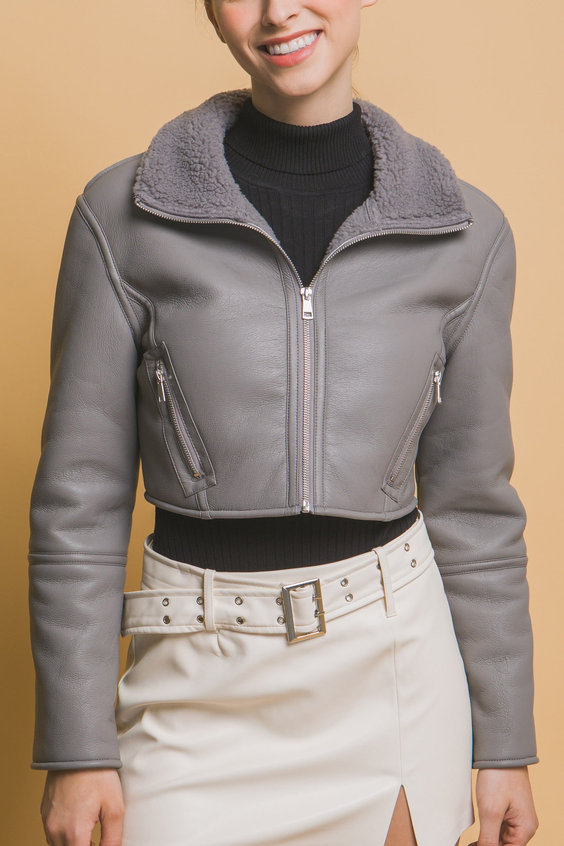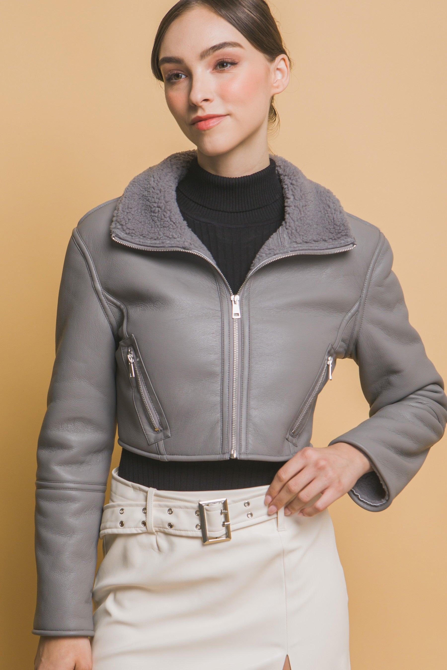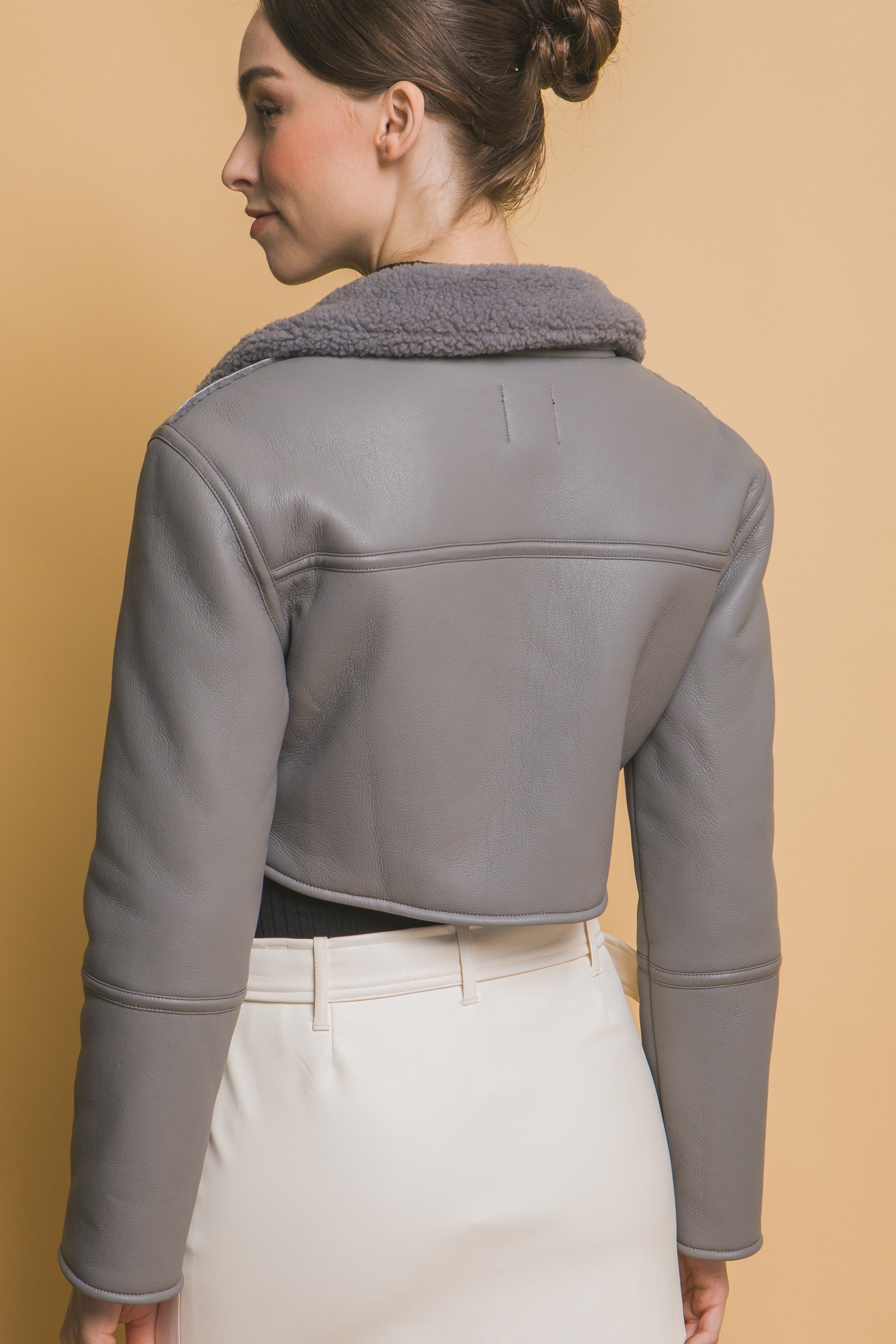 Gray Sherpa Contrast Cropped Jacket