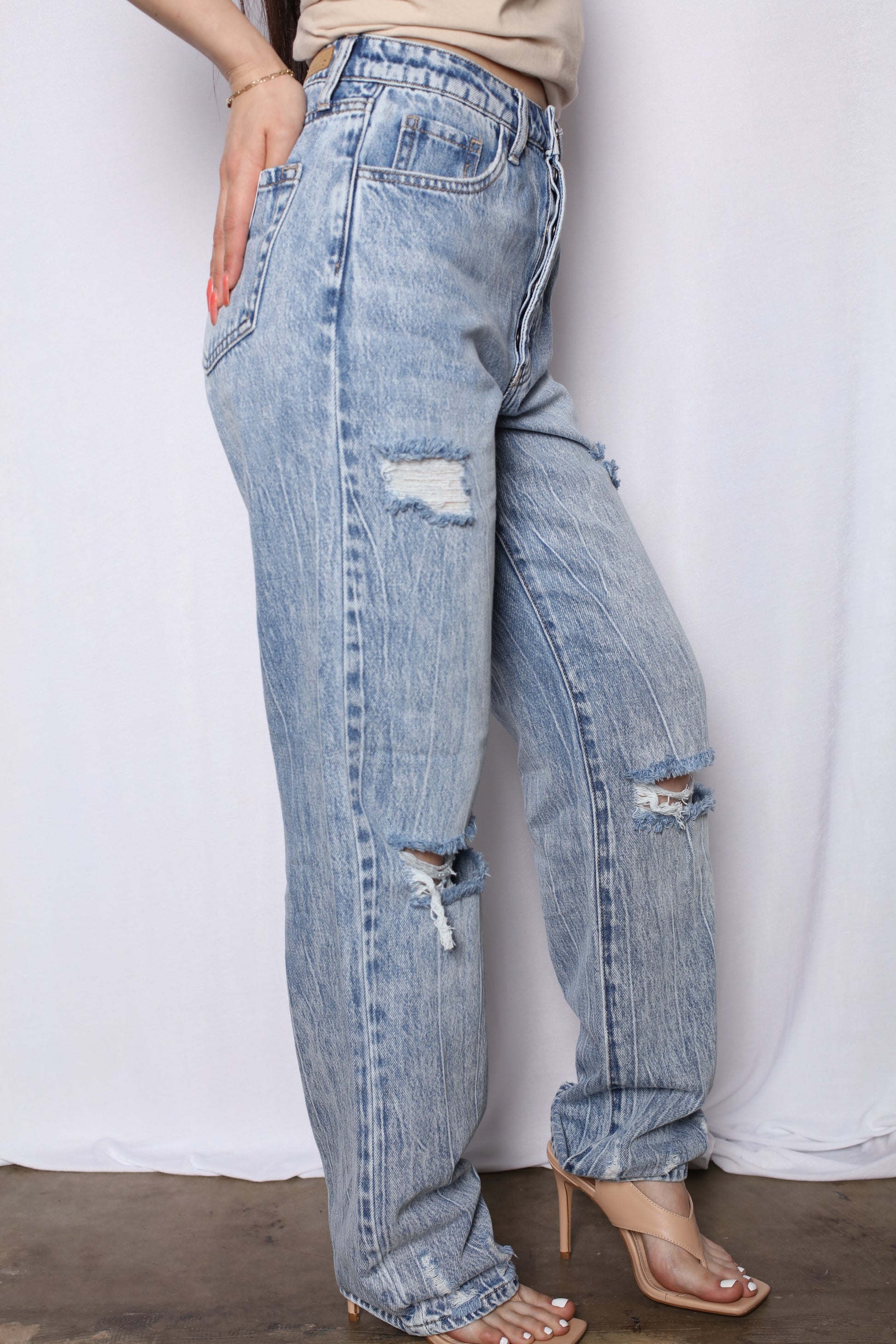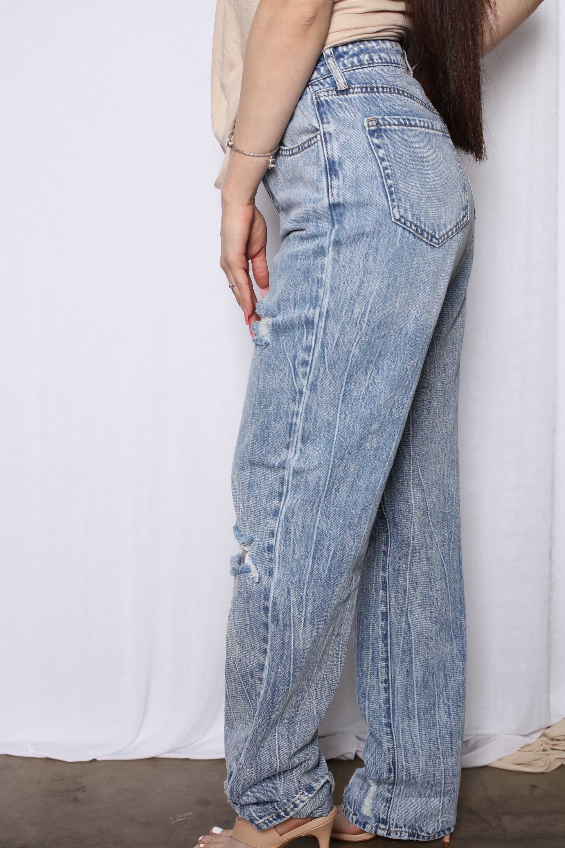 Hi Rise Acid Wash Wide Leg Boyfriend Jeans