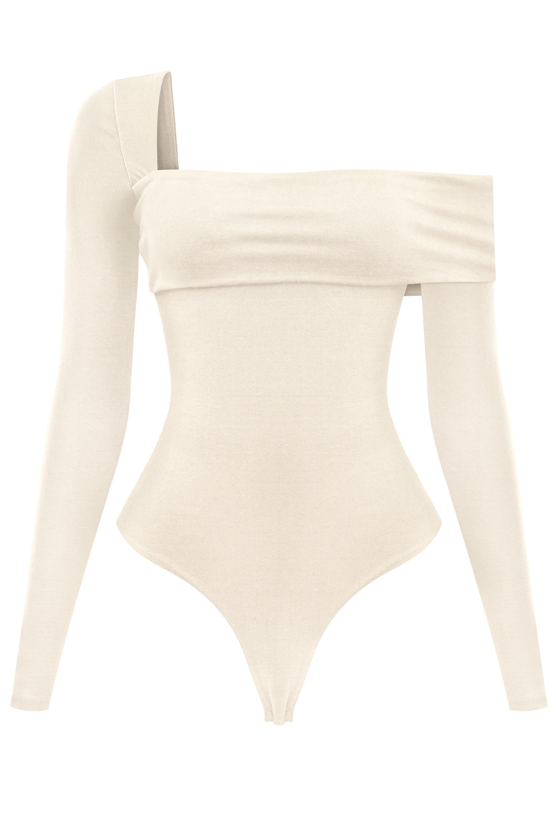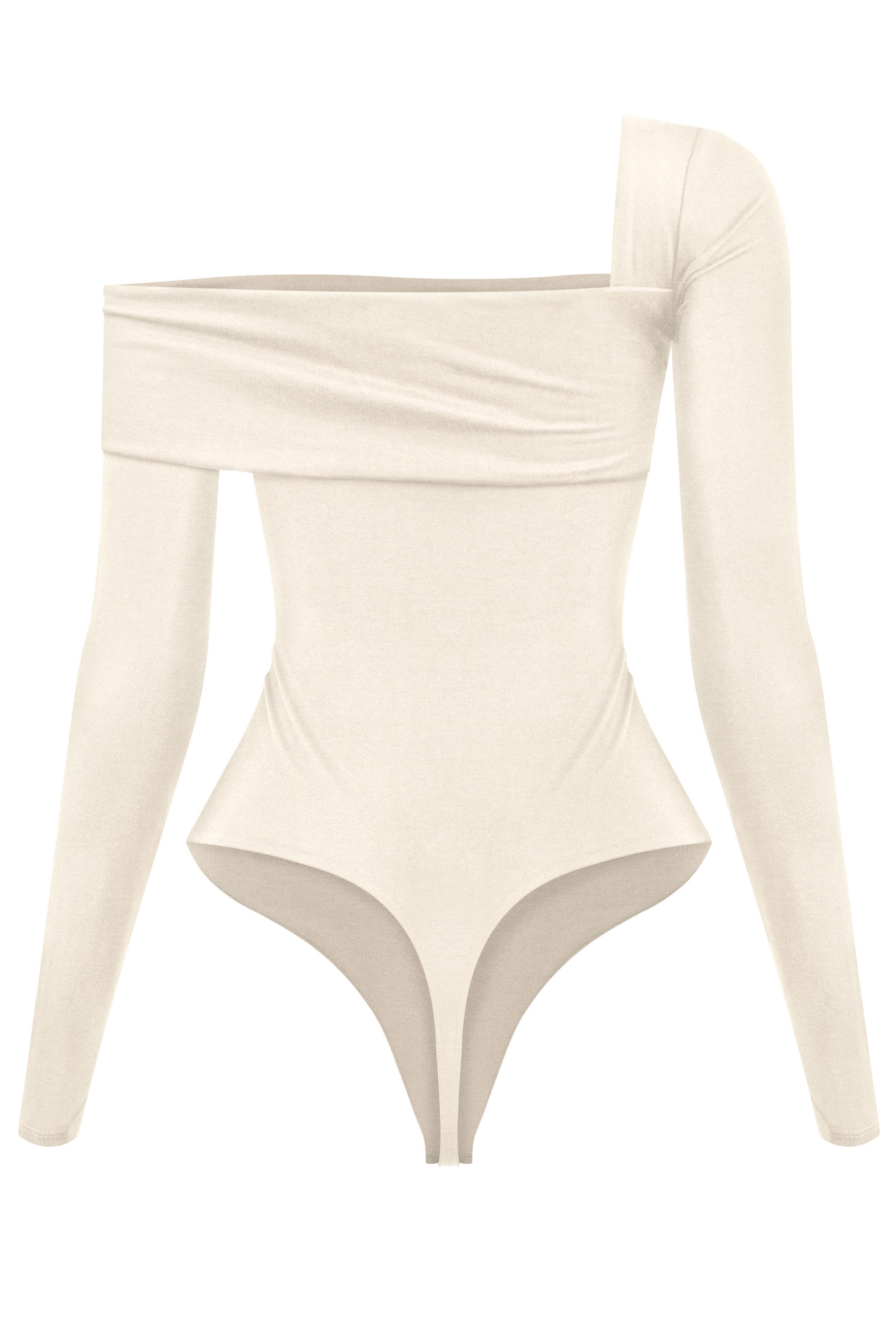 -LONG SLEEVE -OFF SHOULDER DETAIL -SNAP BUTTON CLOSURE -THONG BACK -STRETCHY