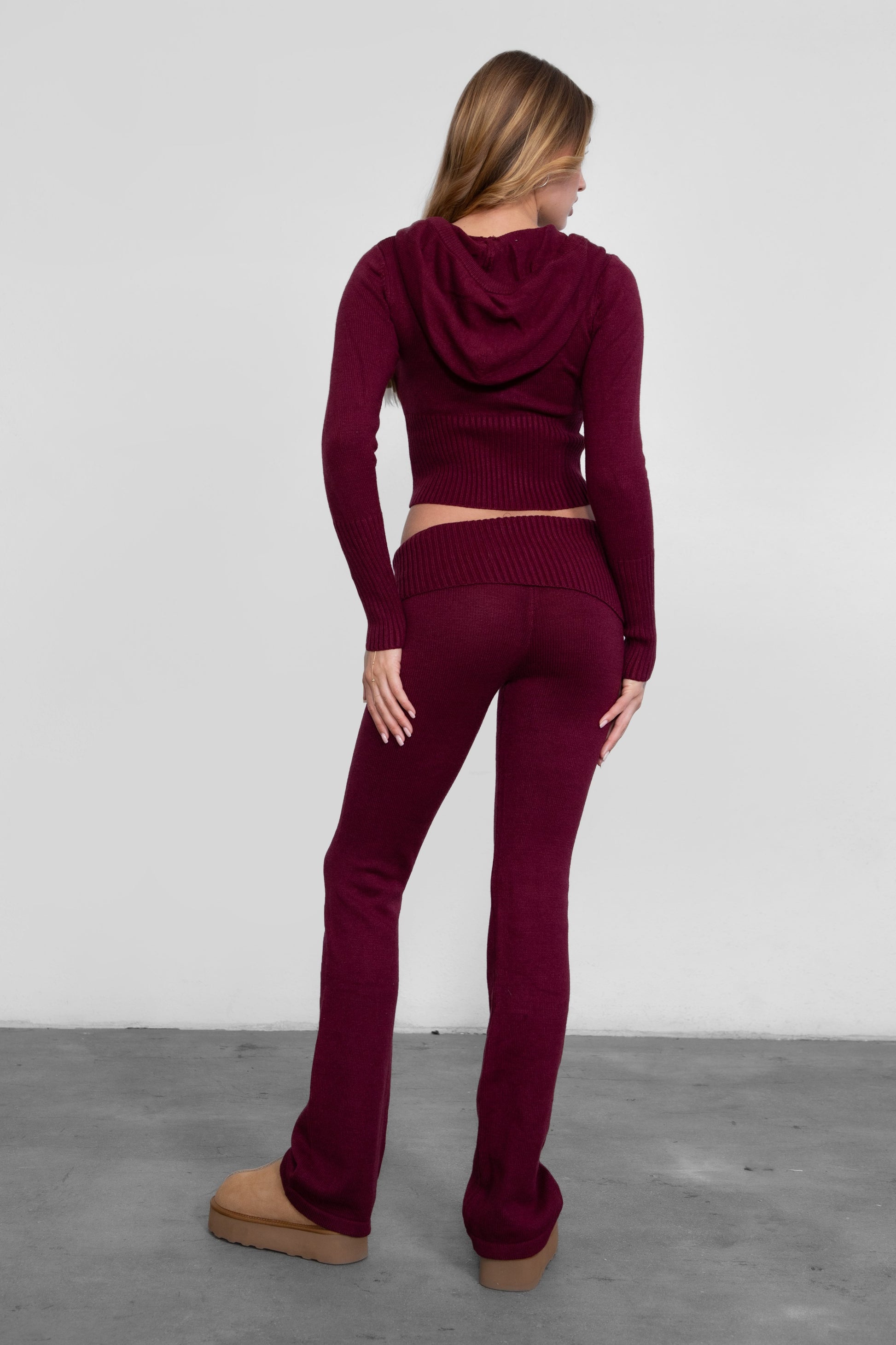 Zip Sweater + Foldover Pant Knit Set Burgundy